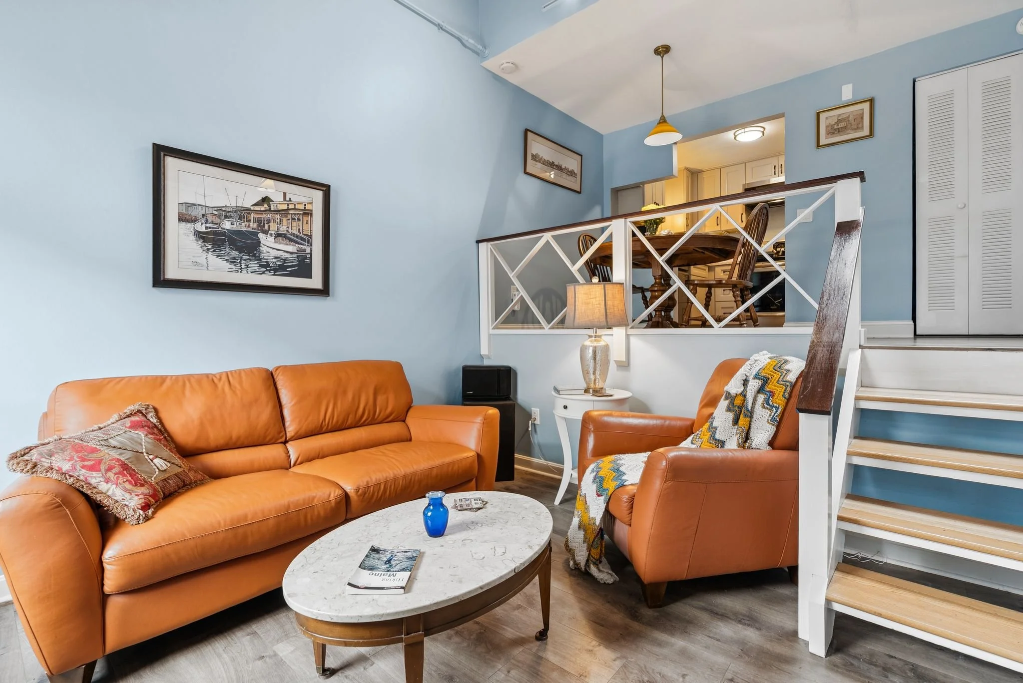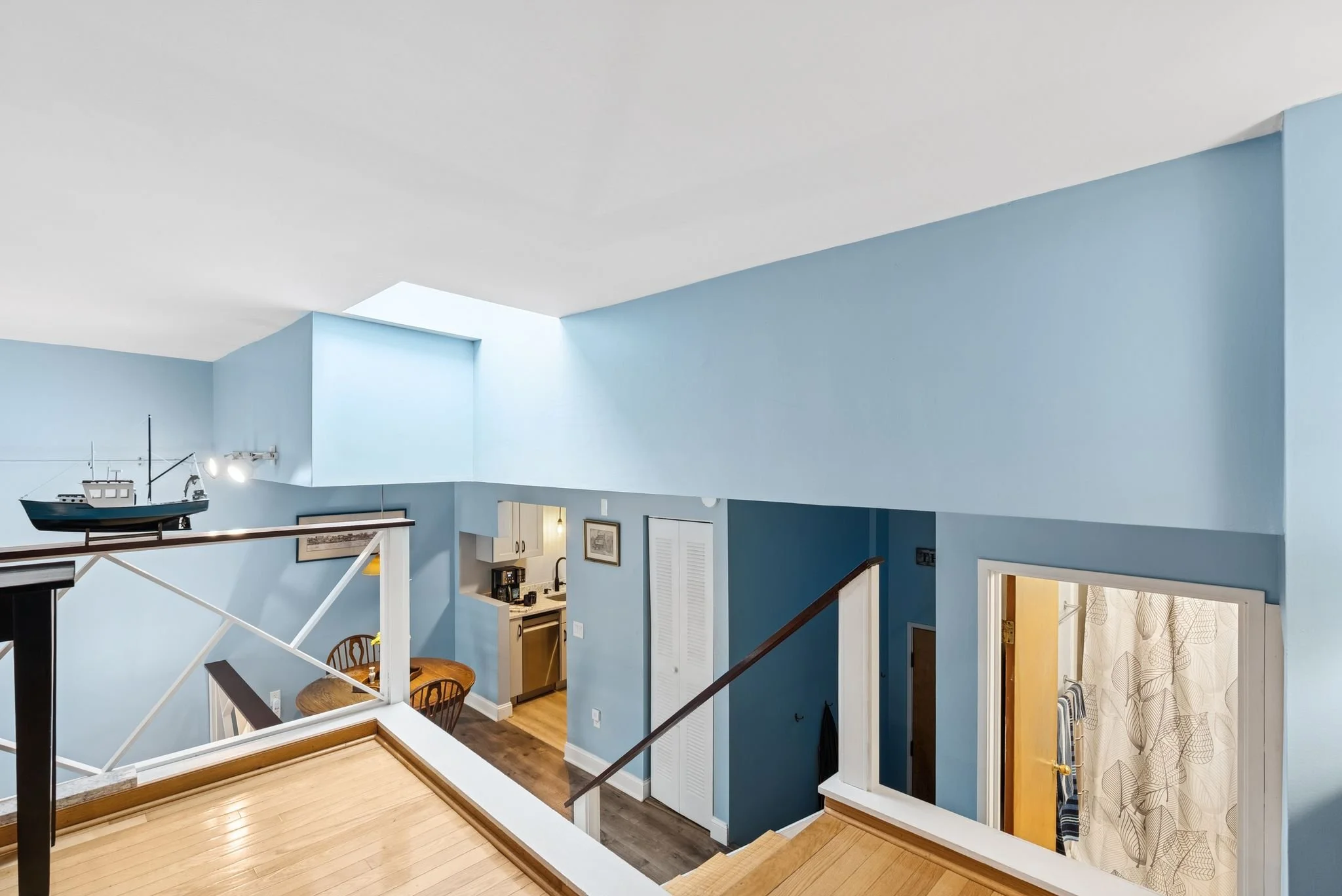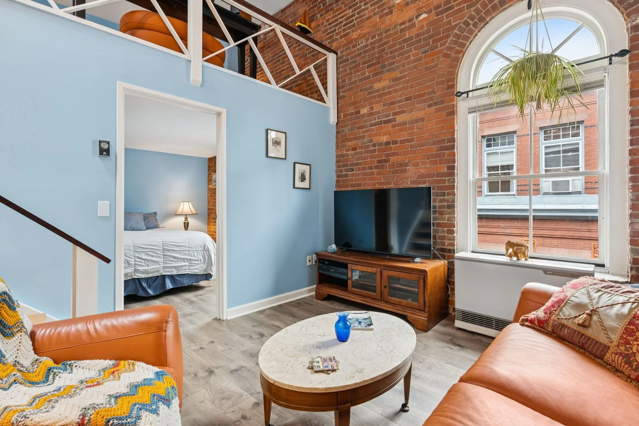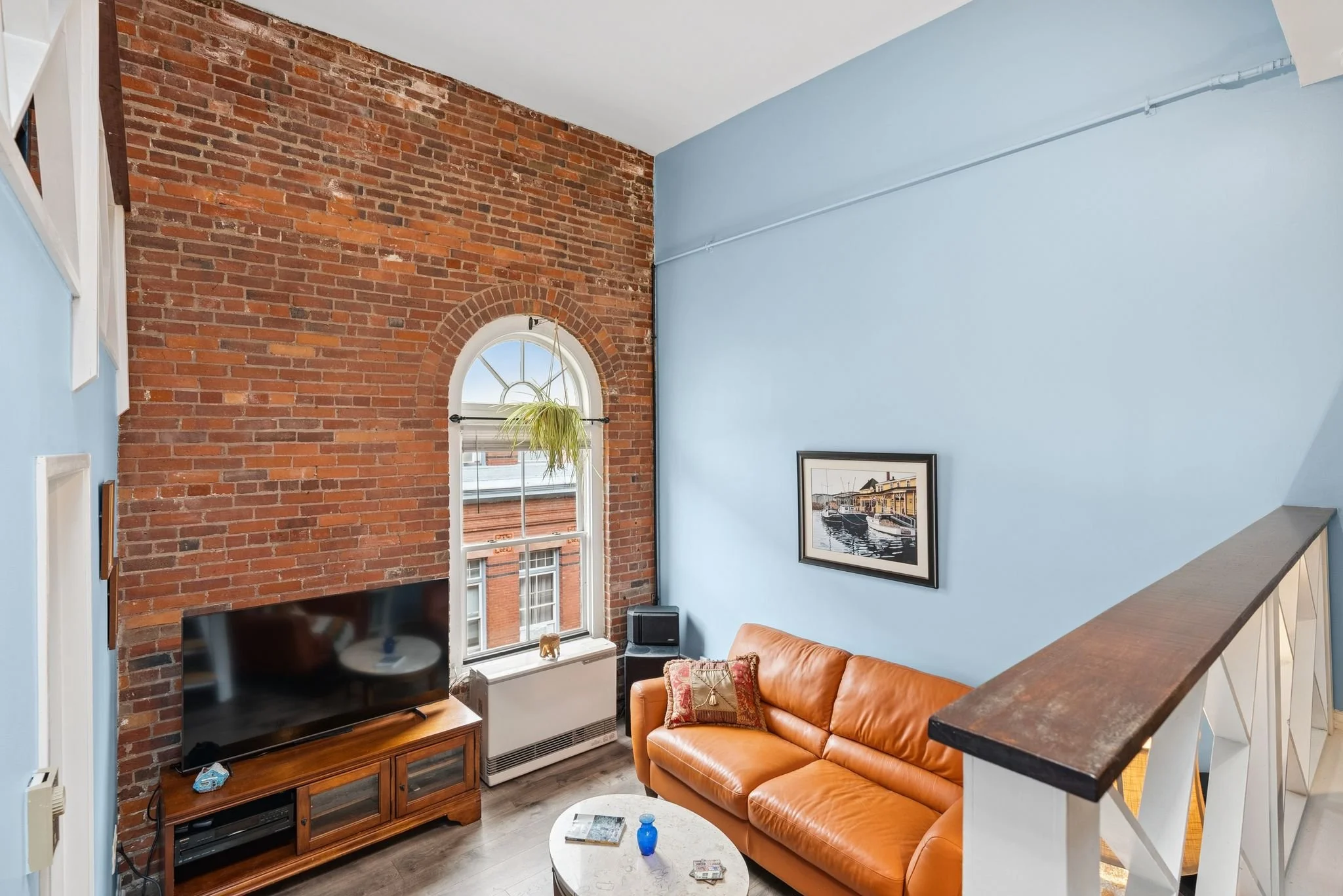 The spacious bedroom offers exposed brick and ample storage, while the airy loft above the living room is perfect for a home office, reading nook, or additional sleeping space. From every level, you'll appreciate the intentional design and rich architectural detail that make this condo truly one of a kind.